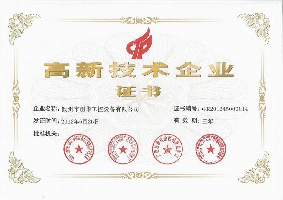 經(jīng)廣西高新技術(shù)企業(yè)認(rèn)定工作領(lǐng)導(dǎo)小組辦公室專(zhuān)家評(píng)審、廣西高新技術(shù)企業(yè)認(rèn)定工作領(lǐng)導(dǎo)小組成員單位合議,以及國(guó)家高新技術(shù)企業(yè)認(rèn)定工作領(lǐng)導(dǎo)小組公示和備案(國(guó)科火字【2012】65號(hào)),我公司榮獲2012年度廣西第一批高新技術(shù)企業(yè)認(rèn)定。